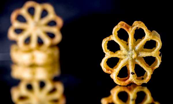 Dip the mould (form), flower or butterfly shaped),in hot oil before dipping it in the mixture.